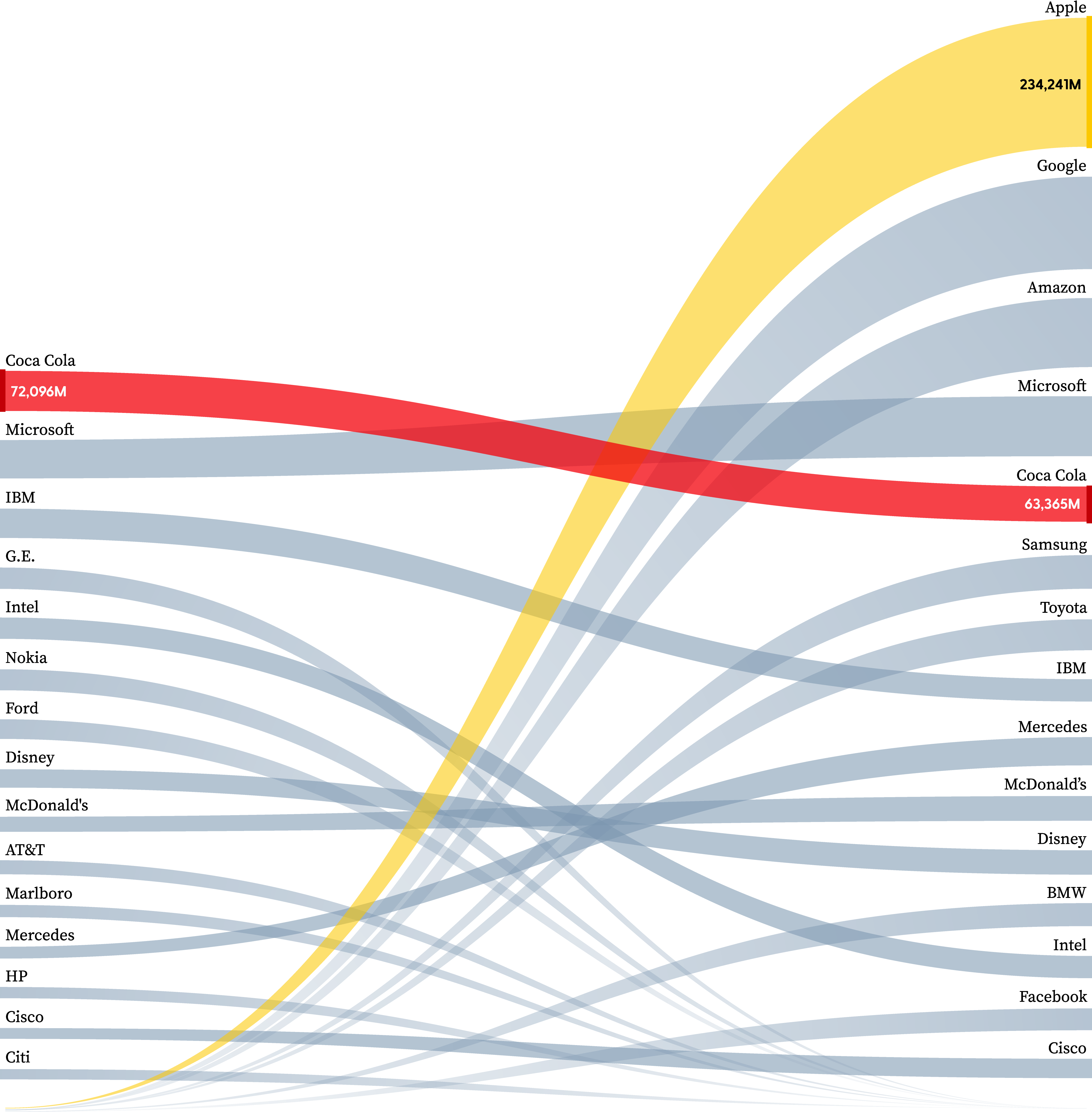 The brand consulting company, Interbrand, maintains a list of the world’s most valuable brands. Here are the rankings of Brand Equity of the top 15 global brands from 2000 through to 2019.