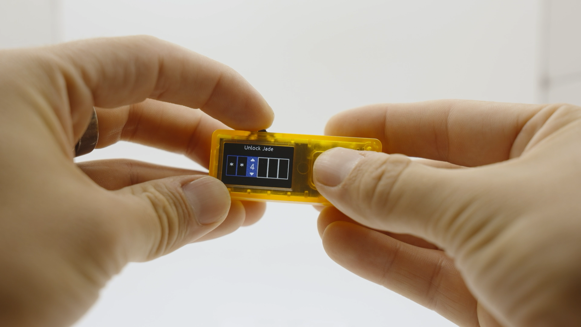 During setup, you’ll be prompted to create a PIN. This PIN encrypts your recovery phrase and protects your Jade from unauthorized access. If your Jade is lost or stolen, it will remain locked if the correct PIN isn’t entered. Be sure to write down your PIN.