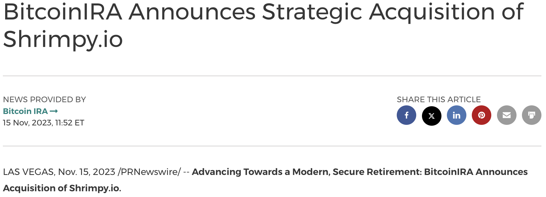 On November 15th, BitcoinIRA announced a strategic acquisition of Shrimpy.io. Shrimpy.io. allows users to connect your exchanges and wallets to completely transform the way you invest in crypto.