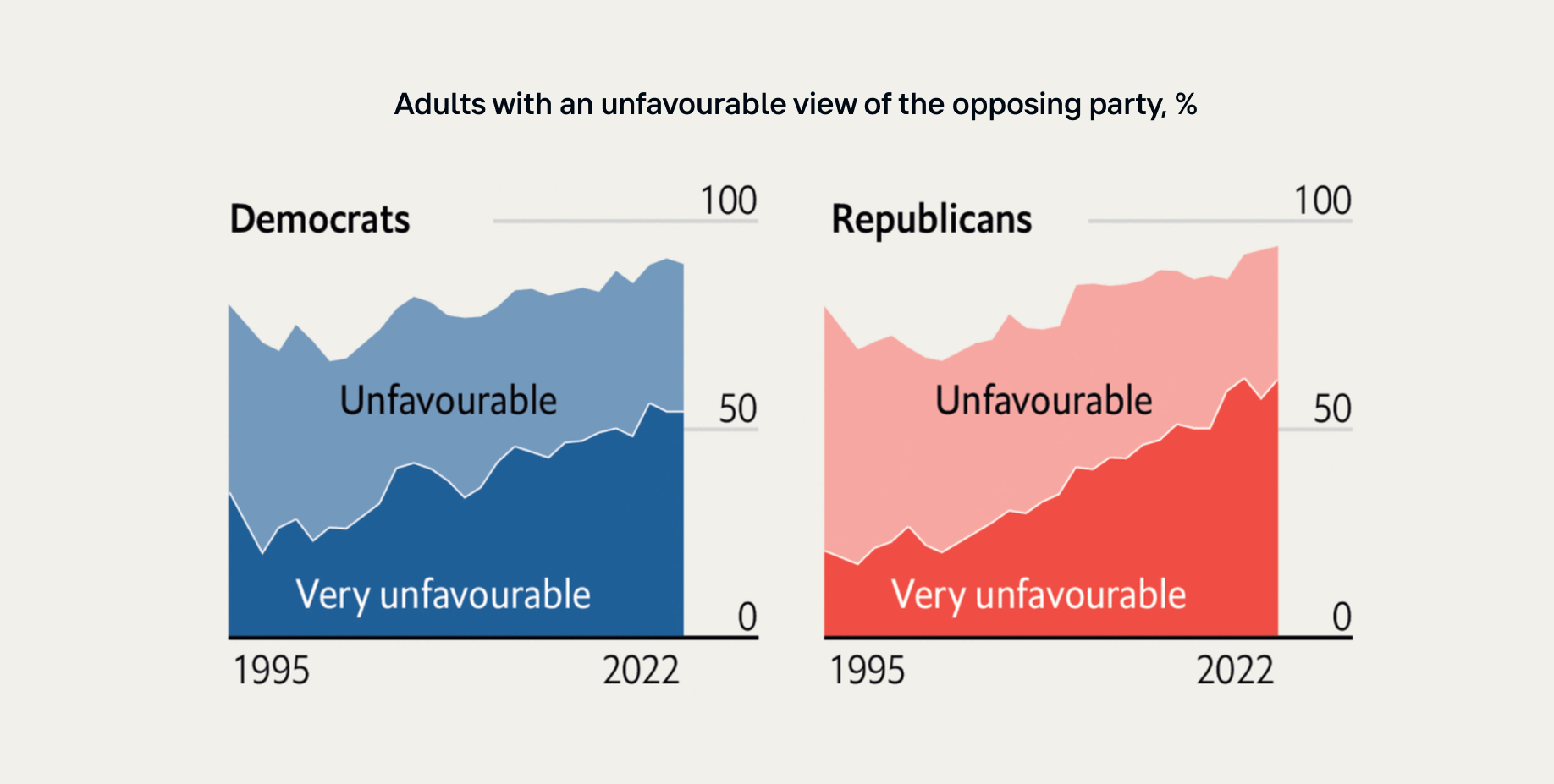Here’s the thing—that’s a feature of the two-party political system. It’s by design. Our leaders actively guide us toward an “us versus them” culture, and we revel in it. We take pride in our “team”—our tribe. Right or left. Red or blue. Both sides are equally guilty of this, and the trench deepens with each election cycle.